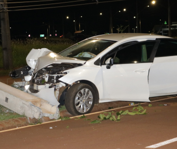 Condutora perde controle do veículo e colide contra poste na Avenida João Batista Salvadori